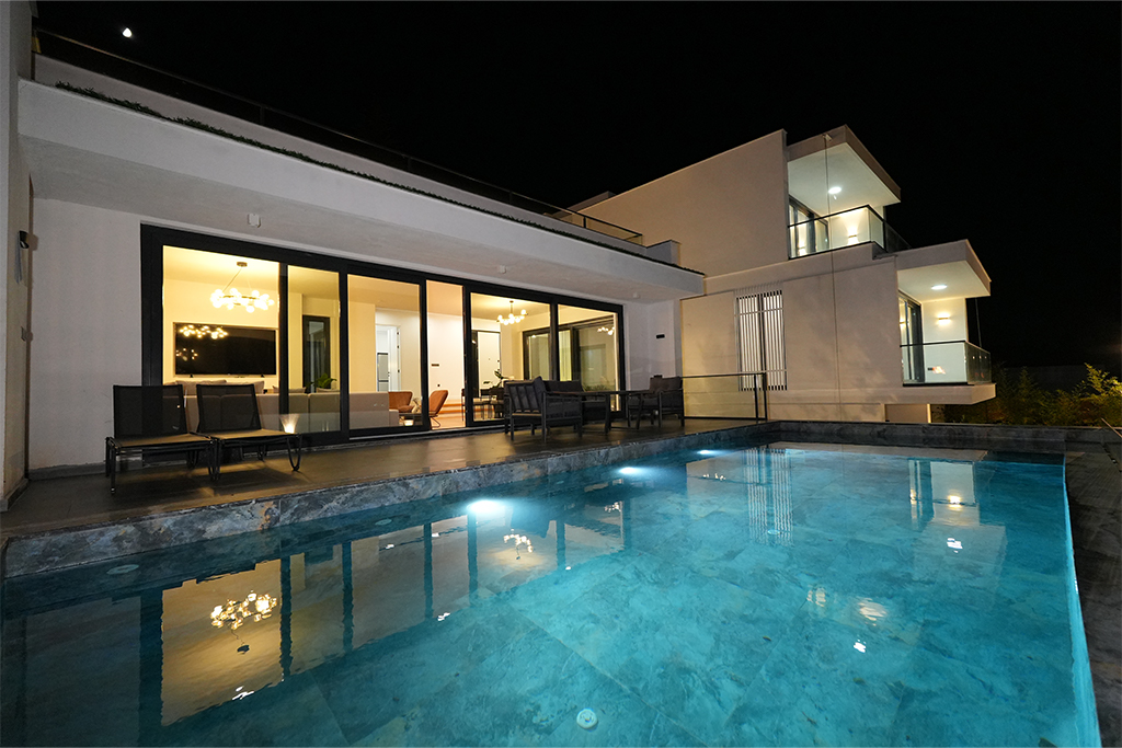Tamamen müstakil yapısı ve dışarıdan görünmeyecek şekilde tasarlanmış korunaklı özel yüzme havuzu ile mahremiyet arayan aileler ve çiftler için ideal bir konaklama alanıdır. Geniş ve ferah iç yaşam alanları, modern dekorasyonu, tam donanımlı mutfağı ve doğayla bütünleşen peyzajı ile misafirlerine rahat ve keyifli bir tatil sunar.