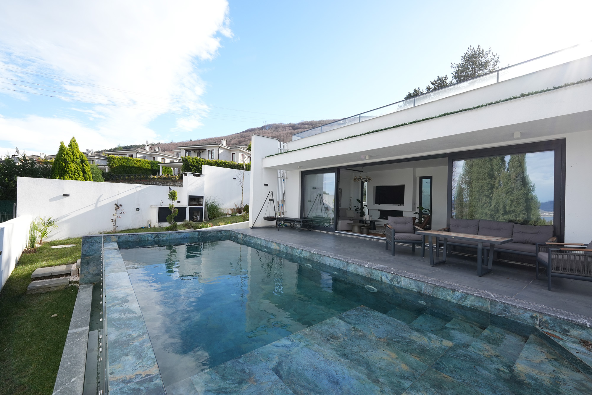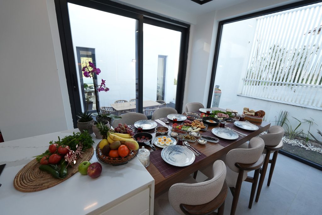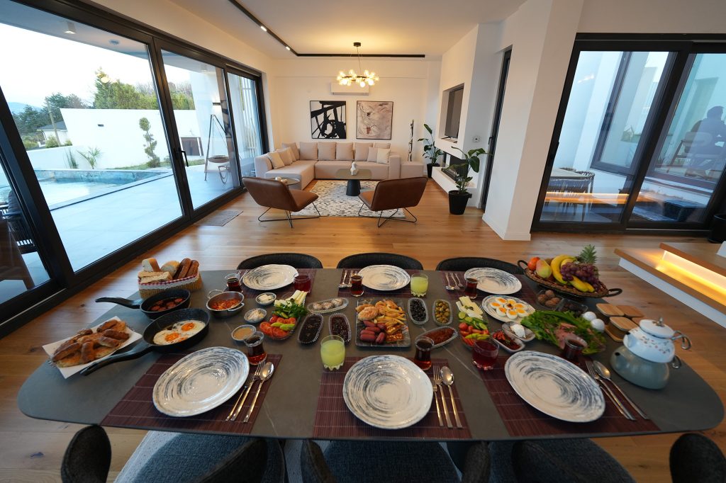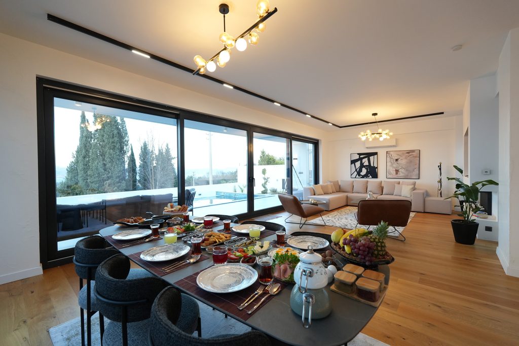 Villamız Misafirlerimizin her konaklamasında kendilerini evlerinde hissetmeleri, bizim için en değerli başarıdır. Salon Mutfak Kış Bahçesi Havuz Üst Kat Balkonlu Oda & Banyo Alt Kat Balkonlu Oda